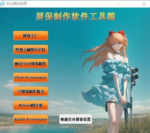 软件工具箱共包含7款屏保制作工具。